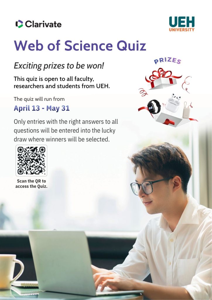 Lưu ý: Người tham gia cần đăng nhập tài khoản vào Web of Science để hệ thống ghi nhận kết quả, bốc thăm may mắn và cung cấp chứng nhận hoàn thành cuộc thi.
